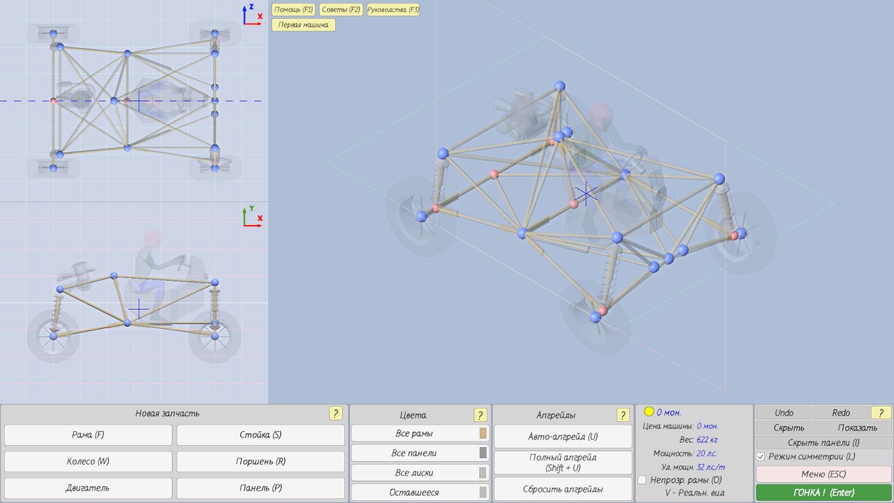 - Проявите фантазию. Вы сможете создать любой прототип автомобиля. Используйте свое воображение – это может быть спортивный вариант, может быть мотоцикл или багги – действуйте, как душа пожелает.