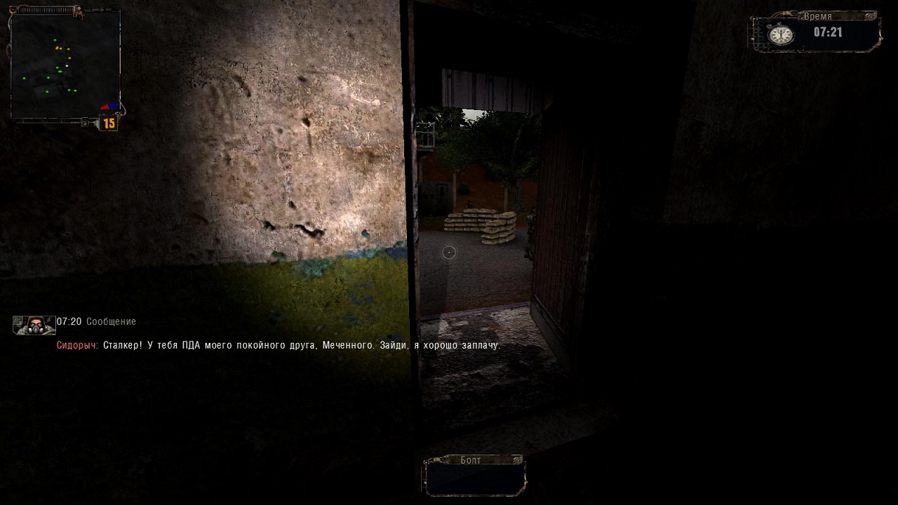 ВНИМАНИЕ !!! В начале игры сначала идём в вагончик, который слева, и говорим с челом - и только после этого можно общаться со всеми остальными, в противном случае можно ходить до бесконечности по Кордону и не найти ни одного квеста.